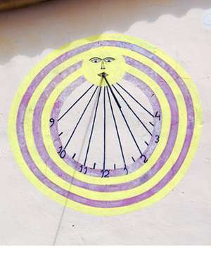 :: DESCRIPCIÓ: Rellotge estèticament molt simple que te la seva gràcia. Línies horàries per les hores i senyals per les mitges hores.