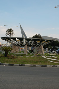 :: DESCRIPCIÓ: Circular, enlairat sobre uns pilons al centre d'una rotonda, línies horàries, números romans (de VII a XIX), signes del zodíac, gnòmon (8 mts) triangular