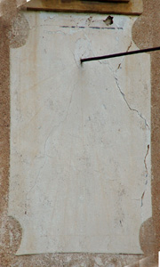 :: DESCRIPCIÓ: Vertical meridional, molt malmès, s'endevinen restes de línies horàries, gnòmon (60 cms) polar