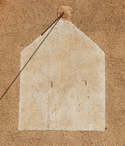 :: DESCRIPCIÓ: Quadrant en fase de recuperació, actualment sols hi ha la base de morter i el gnòmon (50 cms)