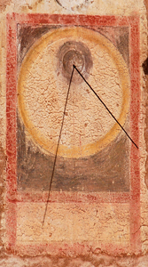 :: DESCRIPCIÓ: Vertical meridional, força malmès, sense línies ni numeració, gnòmon (60 cms) vareta