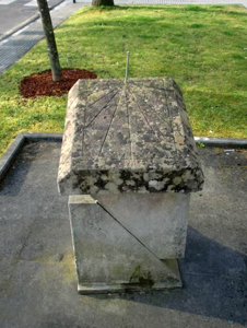Gravat en una placa de pedra horitzontal, línies horàries, numeració romana (de VI a VI9 tapada pels líquens, gnòmon (15 cms) vareta