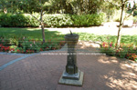 :: DESCRIPCIÓ: Horitzontal circular de bronze, línies horàries curtes, números àrabs (de 5 a 7), gnòmon (15 cms) triangular, lema