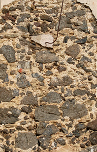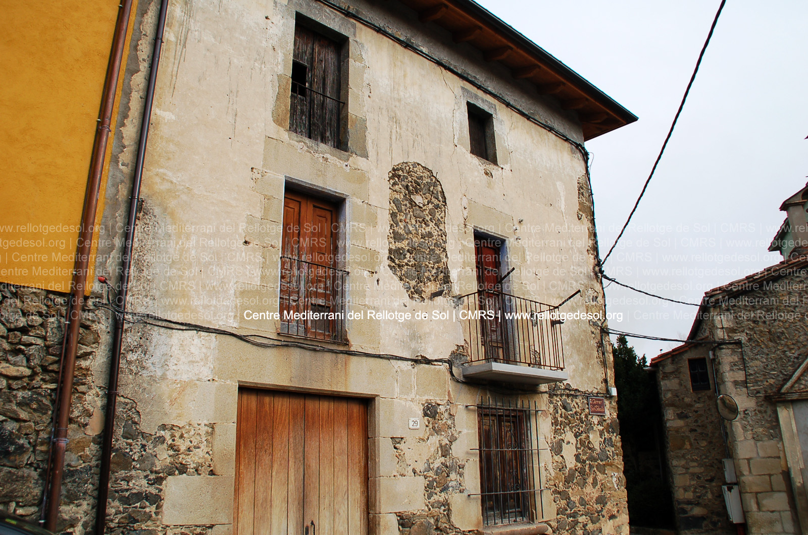 :: DESCRIPCIÓ: Restes d'un rellotge meridional, ha saltat l'arrebossat de la paret i sols resta el gnòmon (40 cms) tort, alçada s.n.m. 478 mts