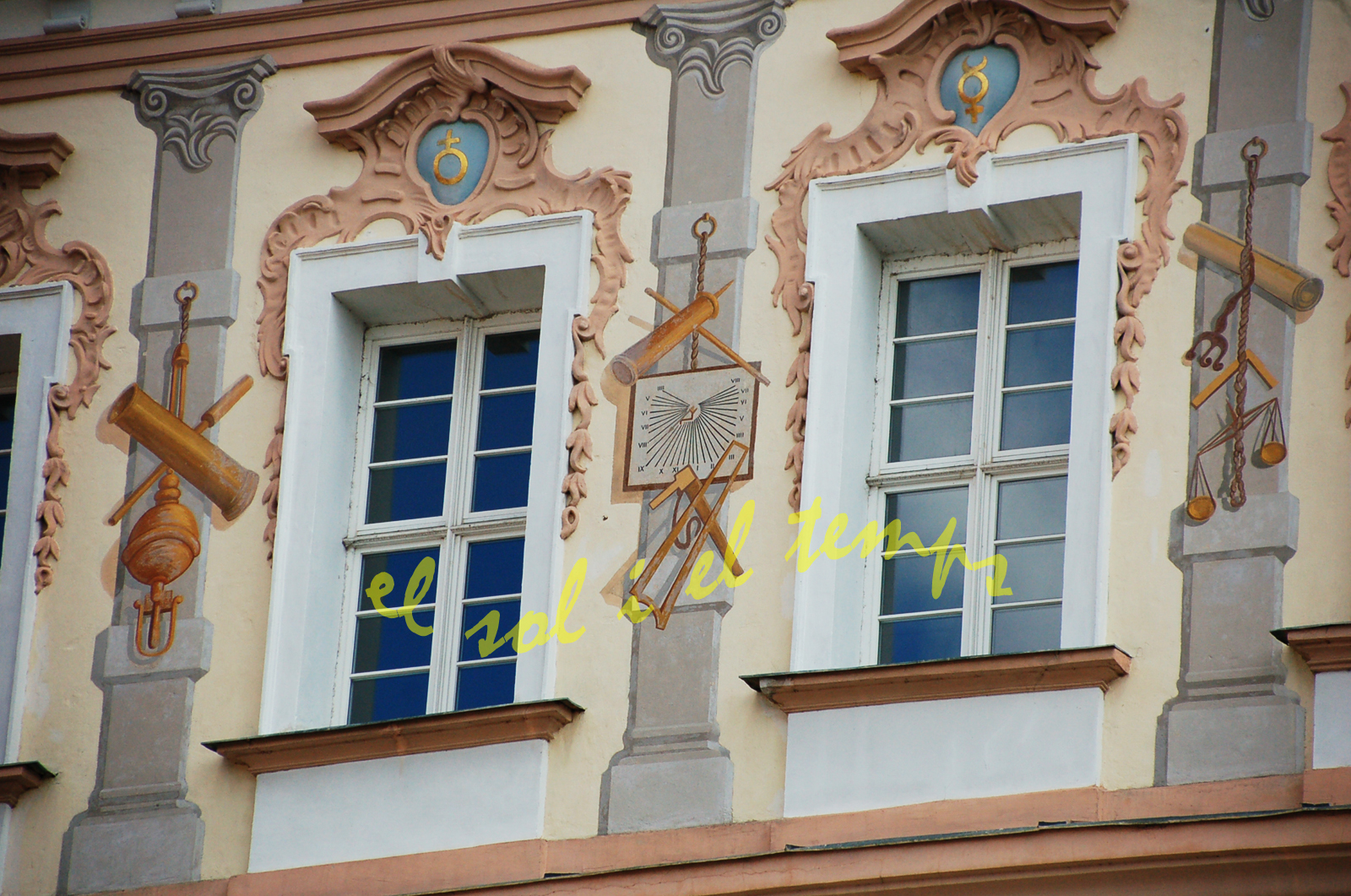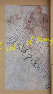 :: NOTES: A la mateixa façana s'hi troben restes (algunes línies i numeració) d'un altre quadrant i la façana exterior esta decorada amb pintures d'astronomia, també un rellotge de sol