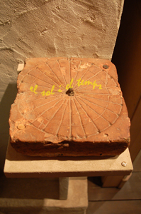 :: DESCRIPCIÓ: Quadrant del segle XV originari de Turaida, utilitzat per marcar el temps en actes religiosos i activitats econòmiques, circular, dividit en 24 sector horaris, sense gnòmon, alçada (78 mts)