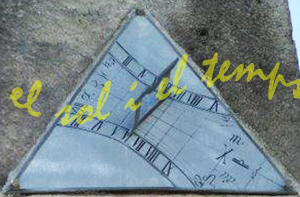 :: DESCRIPCIÓ: Conjunt de tres quadrants triangulars en un monòlit de la plaça de les Catedrals, l'orientat a llevant, línies horàries i zodiacals, signes del zodíac, números romans (de III a IX), gnòmon (10 cms) paral·lel encunyat, alçada (215 mts)