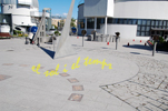 :: DESCRIPCIÓ: Horitzontal circular incrustat a terra, sense línies, números àrabs (de 6 a 18), gnòmon (3 mts) amb base de suport, alçada (155 mts)