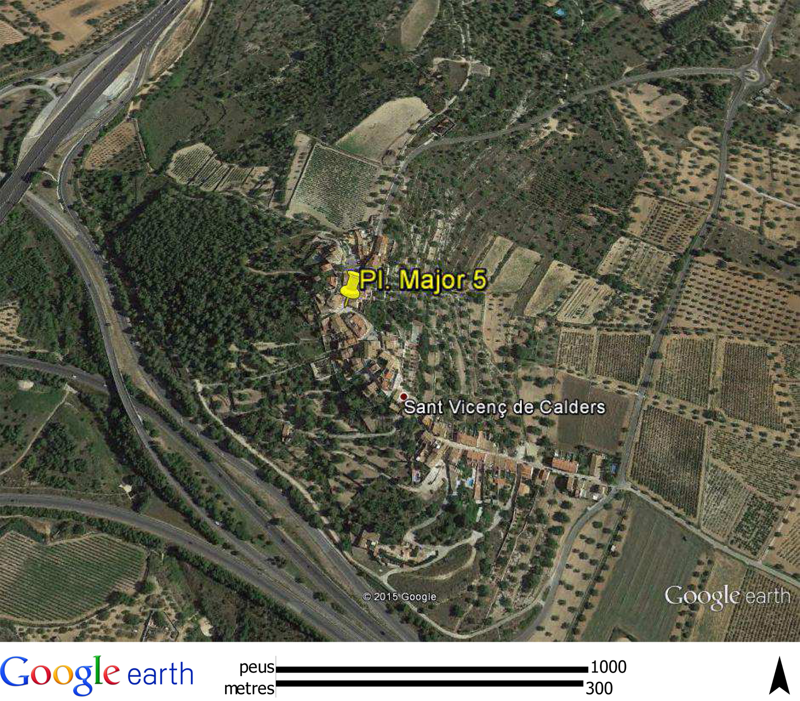 :: NOTES: L'agregat de Sant Vicenç de Calders (que va ser municipi independent fins el 1940) és situat dalt d'un turó formant un petit nucli al voltant de la plaça Major i l'església de Sant Vicenç.