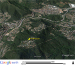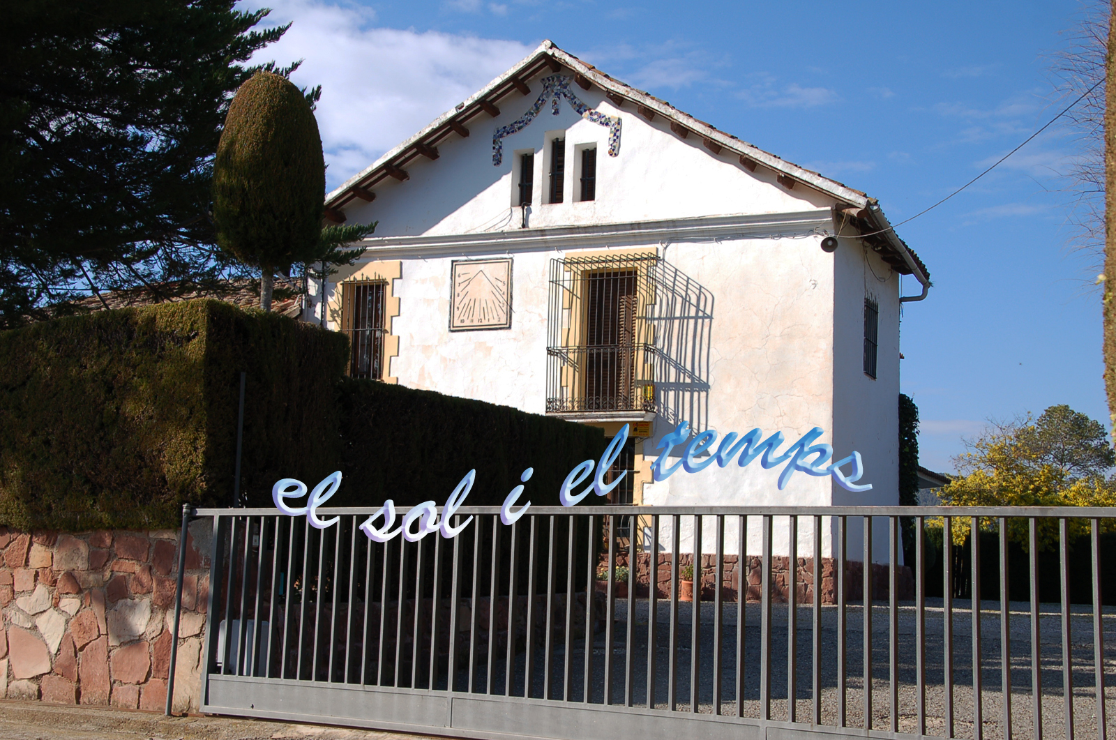 :: DESCRIPCIÓ: Vertical quadrat de matí, línies horàries i mitges hores, números àrabs (de 6 a 5), gnòmon (40 cms) vareta, elevació 283 mts.