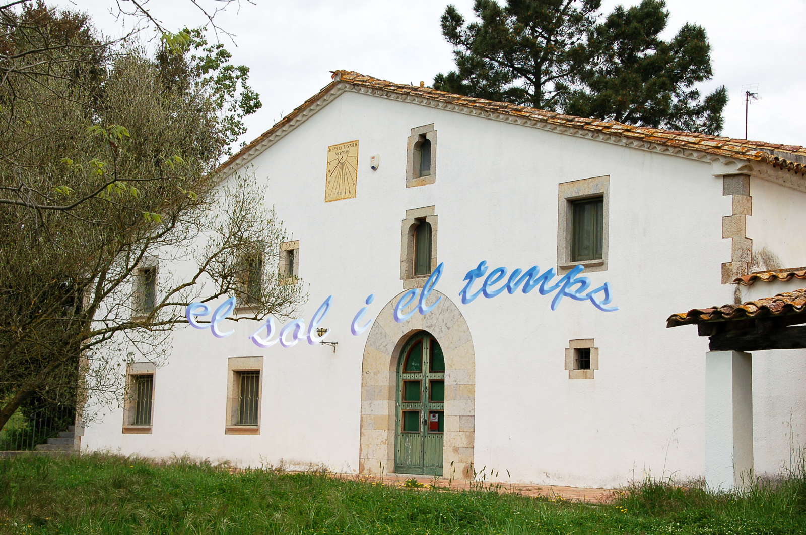 :: DESCRIPCIÓ: Vertical meridional, línies horàries, mitges hores i quarts més curtes, números romans (de VI a V), gnòmon (30 cms.) vareta, lema, elevació 123 mts.