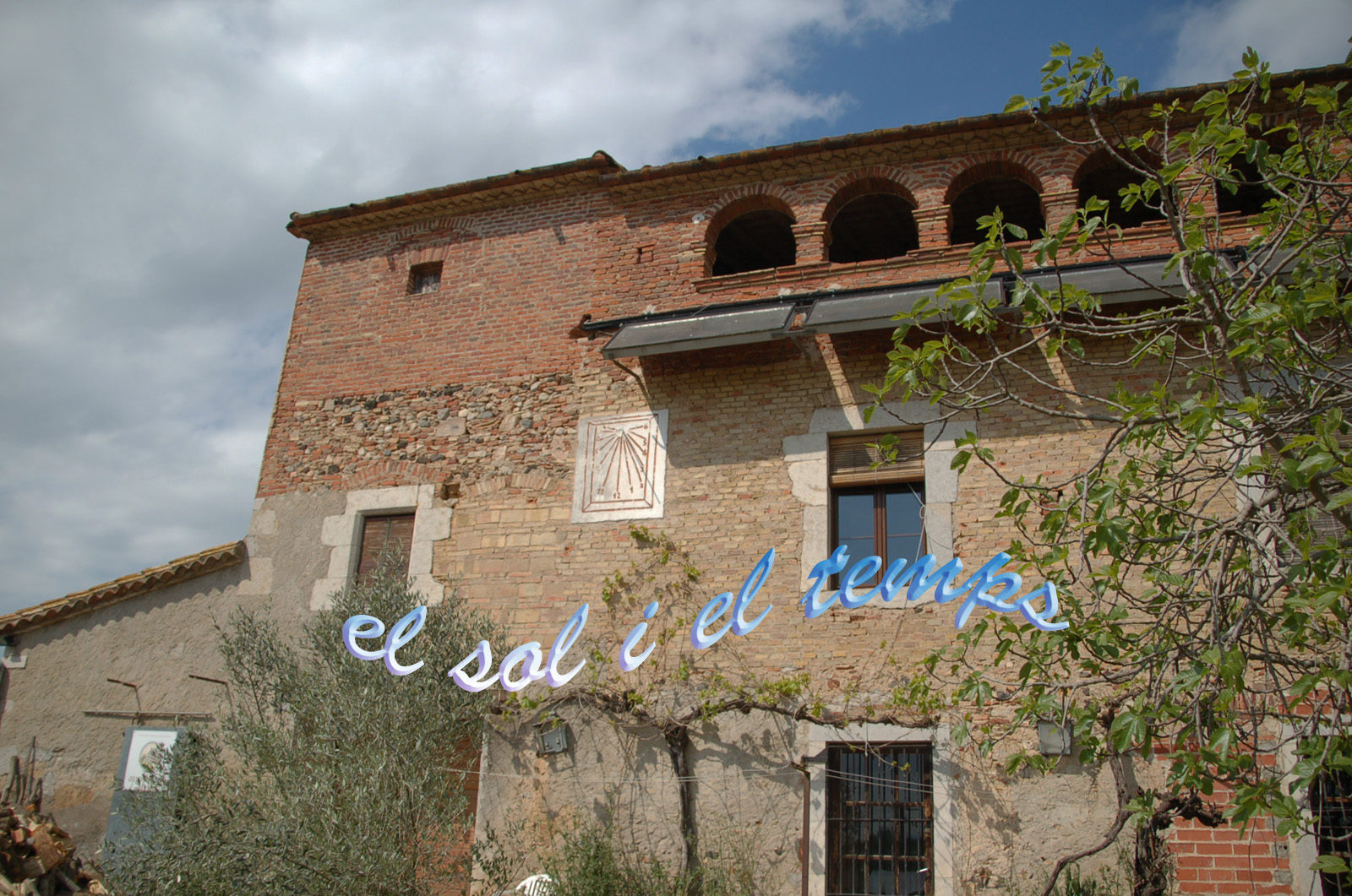 :: DESCRIPCIÓ: Vertical de tarda, línies horàries, numeració aràbiga (de 6 a 6), gnòmon (40 cms.) vareta, elevació 129 mts.