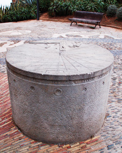 :: DESCRIPCIÓ: Horitzontal cilíndric, corbes de declinació solar. Signat, línies horàries, números romans (de VI a VI), gnòmon absent