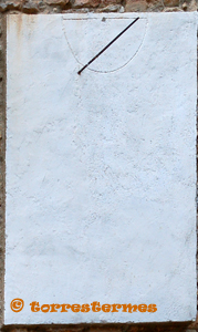:: DESCRIPCIÓ: Restes d'un rellotge vertical de matí, s'endevinen marques de decoració, sols resta el gnòmon (25 cms.) perpendicular, elevació 814 mts.