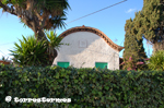 :: DESCRIPCIÓ: Vertical quadrat orientat a llevant, línies horàries i mitges hores més curtes, números romans (de VII a VI), gnòmon (20 cms.) vareta, elevació 3 mts./snm.