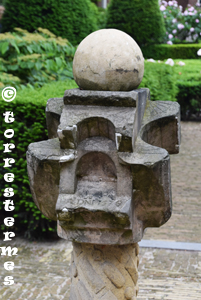:: DESCRIPCIÓ: Composició de pedra irregular contenint una dotzena de rellotges de diverses orientacions, amb línies horàries, numeració aràbiga i amb la particularitat que les arestes fan de gnòmon dels rellotges, elevació 45 mts.