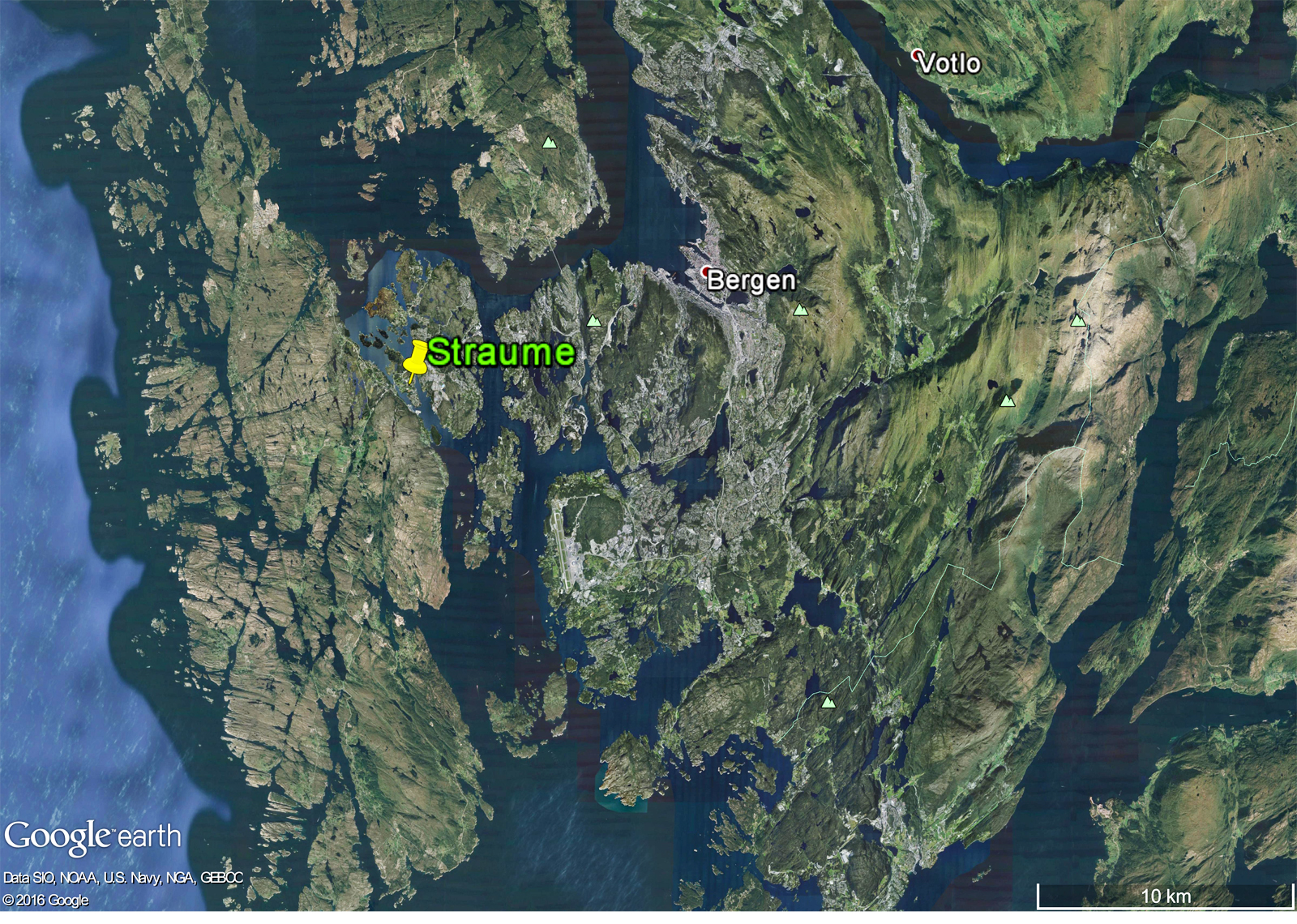 :: NOTES: El poble està situat a la part occidental de la illa de Litlesotra, just al sud de la localitat de Foldnes i sud-oest de la localitat de Knarvik i a 15 kms. del centre de Bergen.