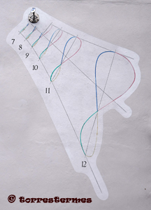 :: DESCRIPCIÓ: Vertical, força declinant a llevant, línies horàries i analemes a les hores, equatorial, números àrabs (de 7 a 12), gnòmon (40 cms.) recte, acabat en disc foradat, elevació 165 mts.