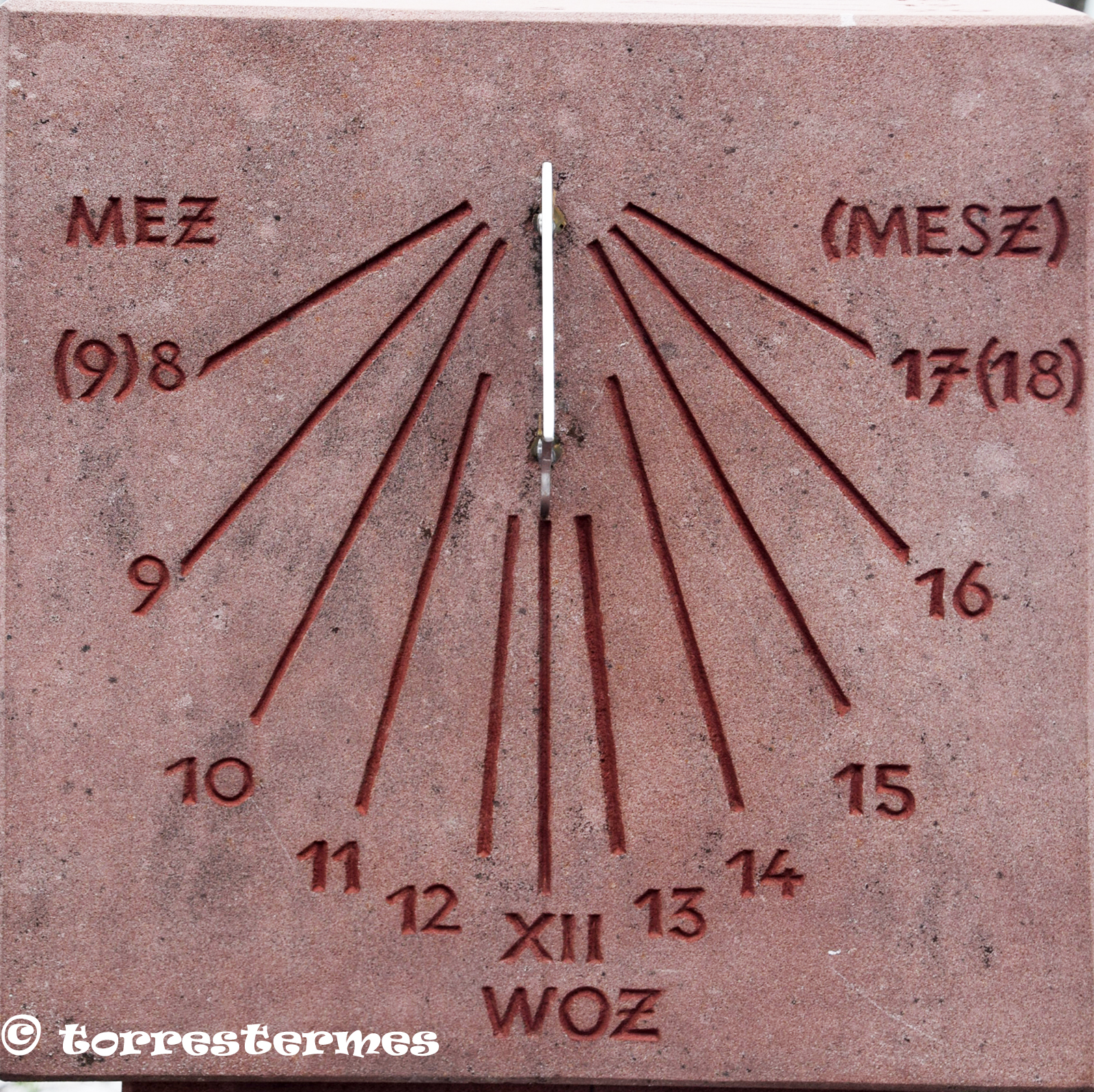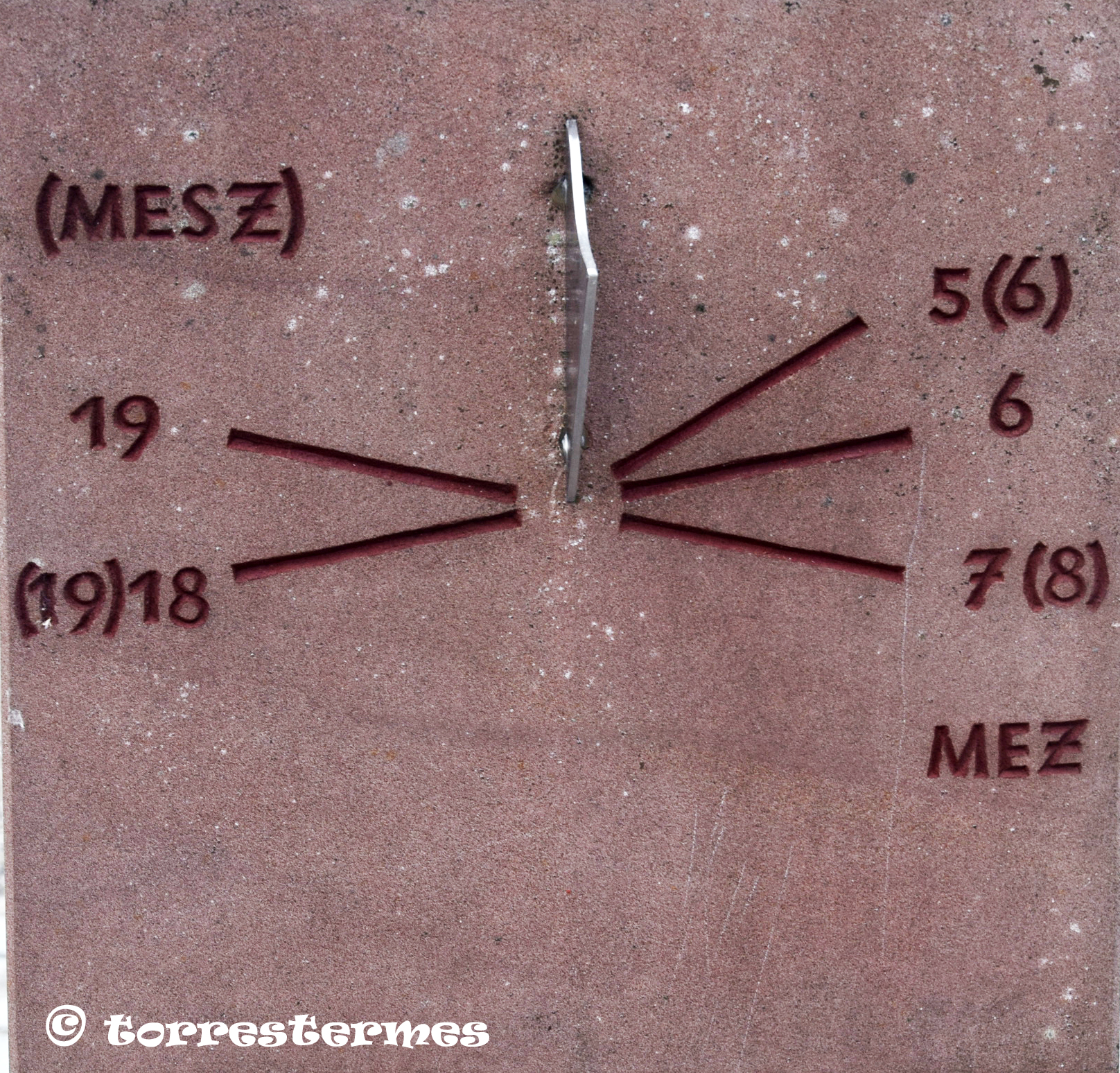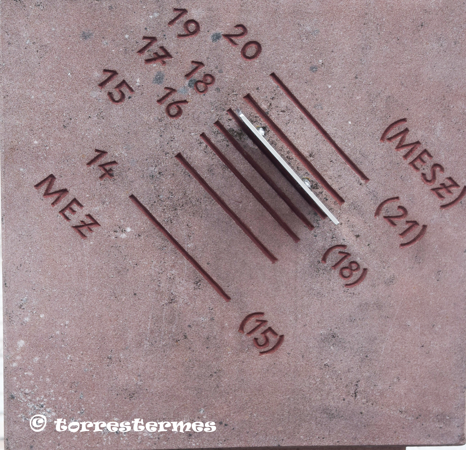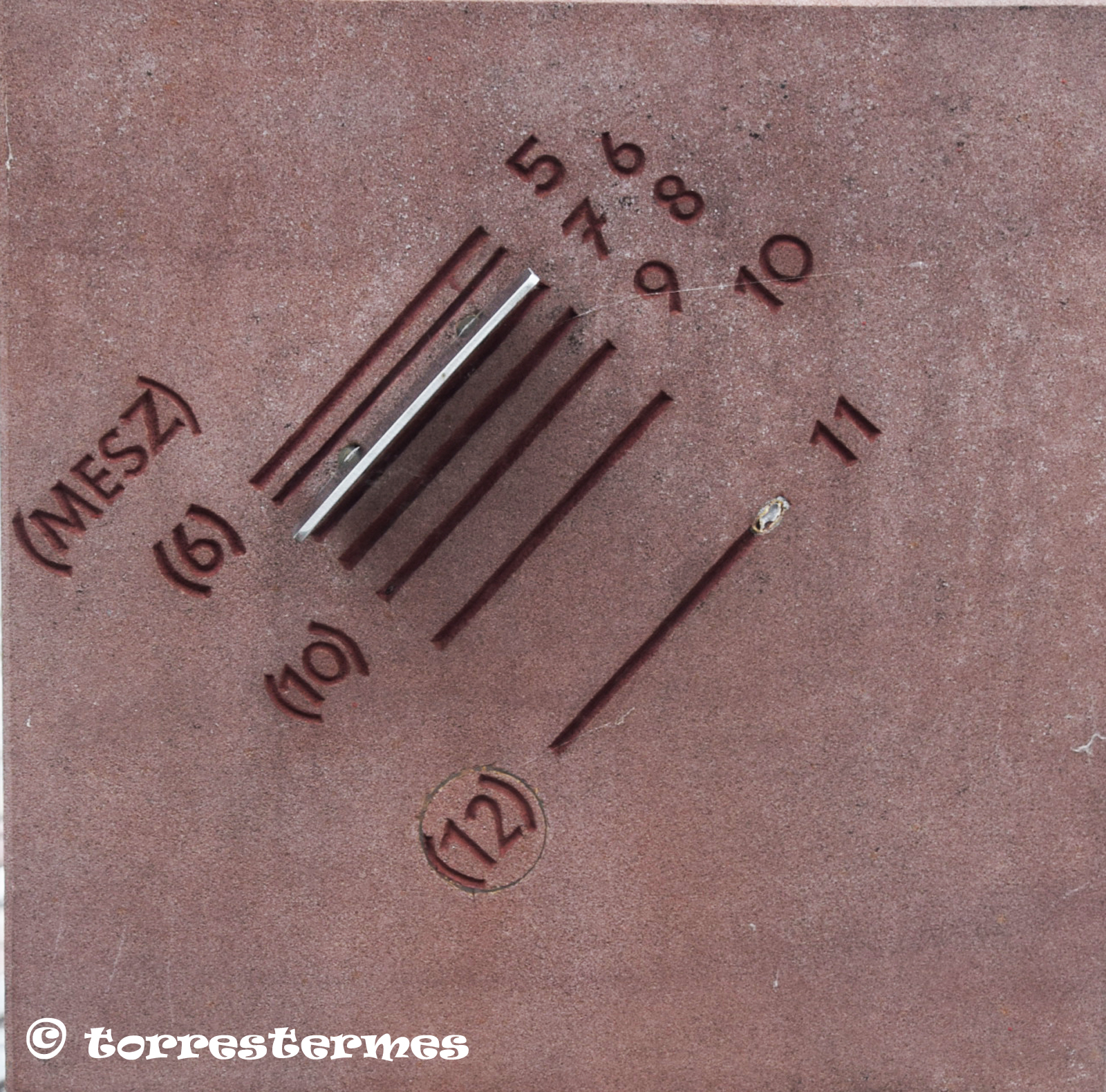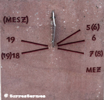 :: DESCRIPCIÓ: Quadrant múltiple, amb cinc cares, una horitzontal meridional i les quatre de cada un dels punts cardinal, línies horàries i numeració aràbiga, gnòmon triangulars i rectangulars, elevació 161 mts.
