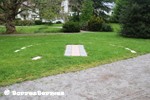 :: DESCRIPCIÓ: Horitzontal analemàtic semicircular, marques a les hores, números àrabs (de 6 a 18), calendari al mig, el gnòmon es l'observador situat a la data del calendari i l'ombra marca l'hora, datat, elevació 177 mts.