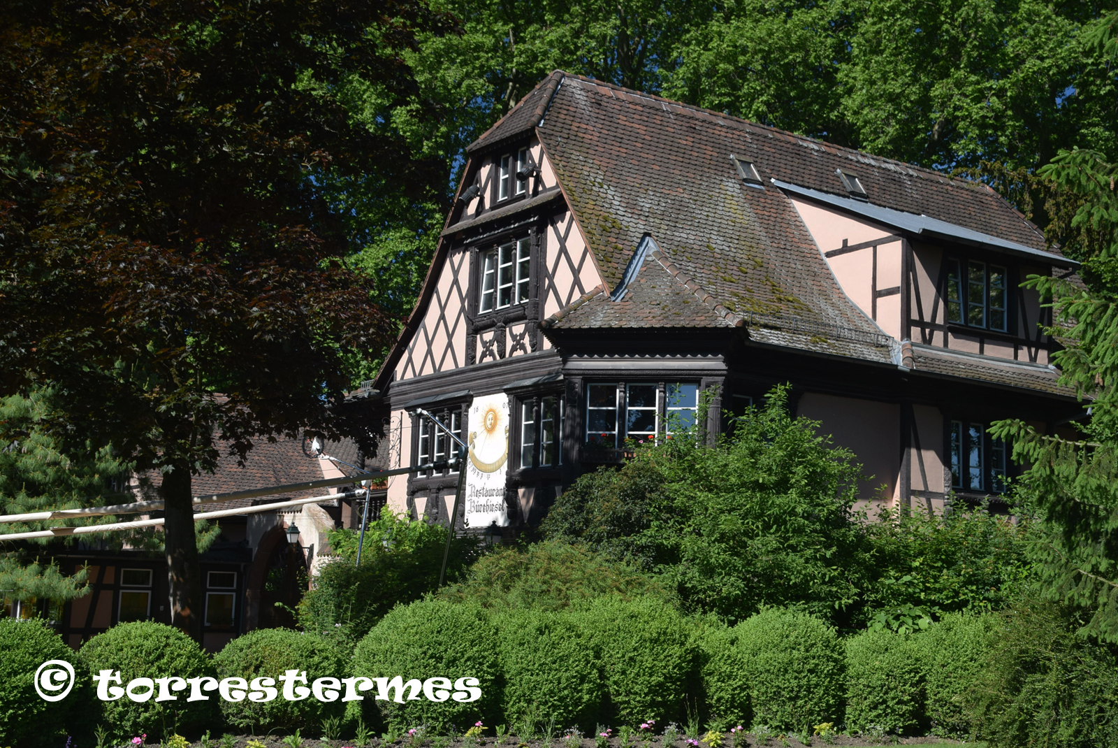 :: NOTES: Una antiga granja alsaciana construïda l'any 1607, aquest edifici, avui restaurant. va ser portat, per peça, al parc per a l'Exposició Internacional Industrial de 1895.