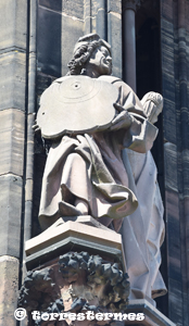 :: NOTES: Situat a la plataforma de la torre, al pilar central. La catedral és una església fundada el 1015 sobre restes d'una catedral anterior i elevada a partir de 1220 en estil gòtic.