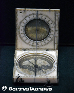 :: DESCRIPCIÓ: Rellotge de sol, horitzontal i vertical, de butxaca, Origen: ECOLE D'HORLOGERIE, FRANCE PARIS. Inventari ?