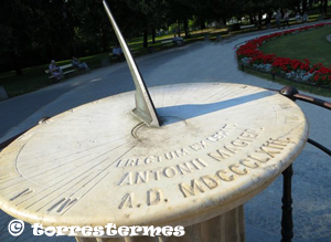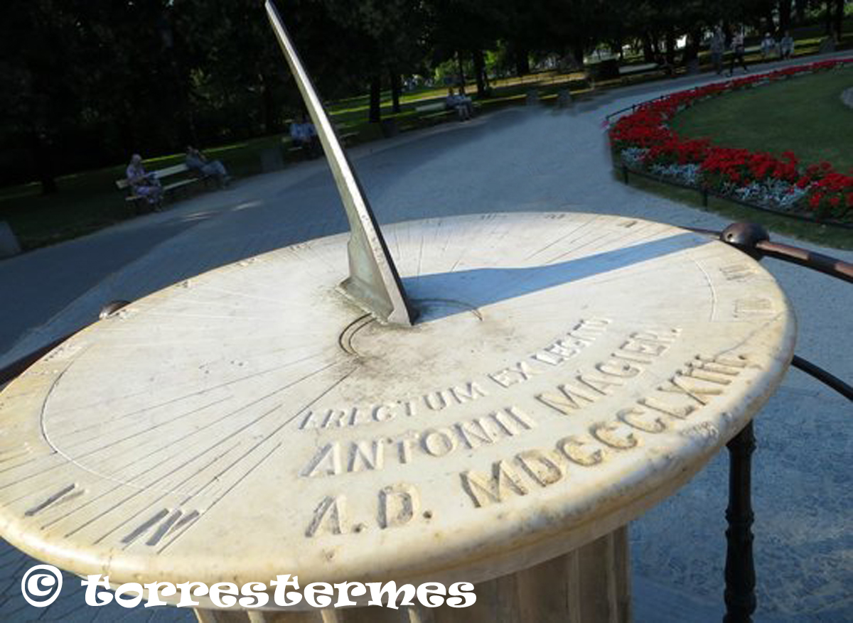 :: NOTES: El rellotge de sol de marbre, un rellotge de sol horitzontal de 1863, està situat a prop de la gran font del centre del parc. Va ser construit pel notable físic i meteoròleg Antoni Szeliga Magier (1762-1837).