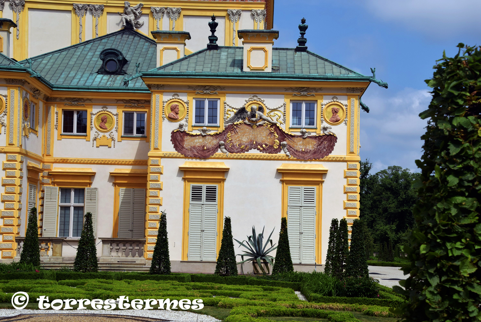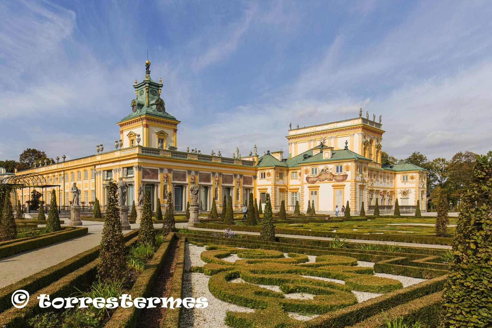 :: NOTES: El Palau de Wilanow fou construït pel rei de Polònia, Joan III Sobieski, en el primer quart del segle XVII, i més tard fou engrandit pels seus propietaris successius. Presenta el caràcter típic de l'art barroc quant a residència suburbana es refereix.