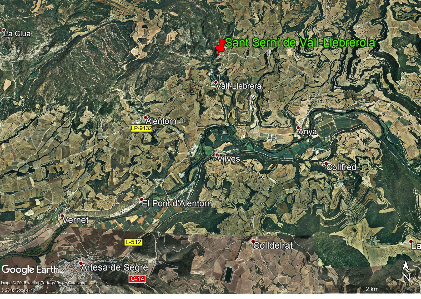 :: NOTES: Vall-Llebrerola està situat a l’esquerra de la riera de Seguers o de Vall-llebrera, aigua amunt de Vall-llebrera, de la parròquia de la qual depèn. Destaca l’església romànica de Sant Serni de Vall-llebrerola restaurada i datada a la fi de s. XI.