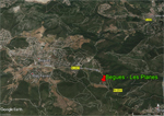 :: NOTES: L'accés es pel camí que hi ha al denominat revolt del Burrito, cap a l’antic camp de tir al plat, i a uns 200 metres a mà dreta hi ha un altre camí que va fins a la masia o també des del camí que va de la Rectoria un cop passada la variant.