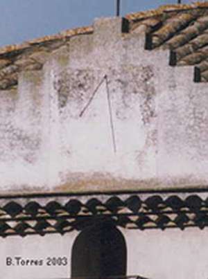 :: DESCRIPCIÓ: Ovalat inscrit en un rectangle. Línies horàries d’hores i mitges. Restes de pintura vermella als angles superiors