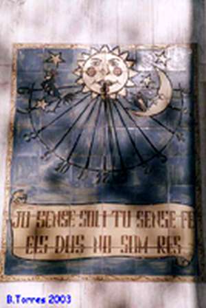 :: DESCRIPCIÓ: Rectangular. Orientació Sud. No està ben calculat i el gnòmon està torçat.