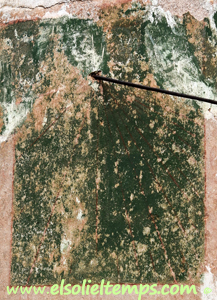 :: DESCRIPCIÓ: Restes d’un rellotge vertical, força malmès, queden vestigis de la decoració, no es veuen ni les línies ni els números, gnòmon (30 cms) vareta, elevació 380 mts. snm.