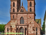 :: NOTES: L'església es va construir en estil romànic tardà i va ser parcialment derruïda durant el terratrèmol de Basilea de 1356, essent posteriorment reconstruïda en estil gòtic per Johannes Gmünd, i ampliada el 1421 per l'arquitecte Ulrich von Ensingen.