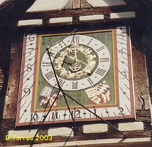 :: DESCRIPCIÓ: Sobreposat a un rellotge de corda. Nums. Àrabs. Escuts dels nobles del castell