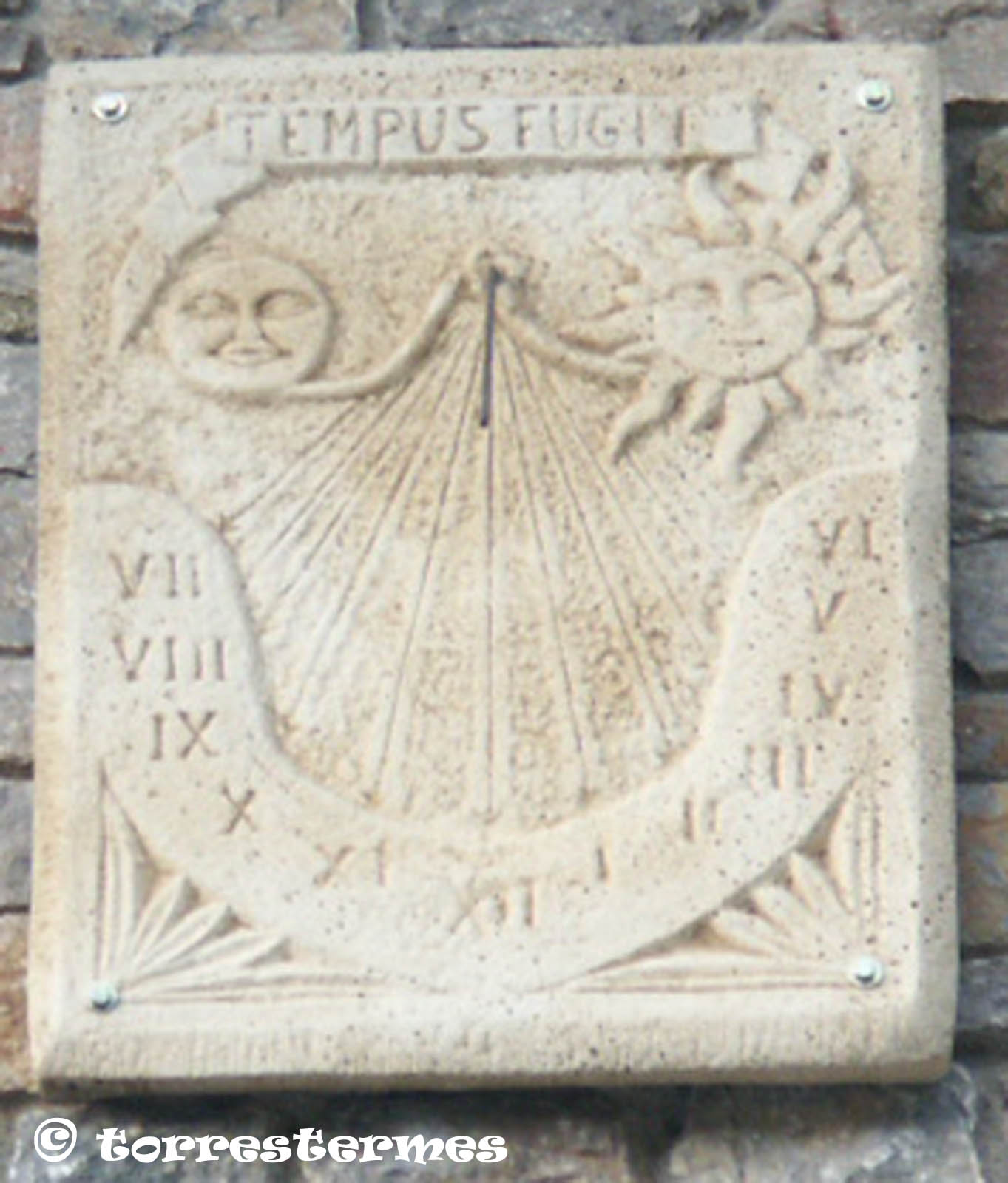 :: DESCRIPCIÓ: Quadrat, de sèrie, línies horàries, números romans (de VII a VI), gnòmon (15 cms.) vareta, lema, elevació 1493 mts. snm.