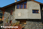:: DESCRIPCIÓ: Vertical de matí, esgrafiat, línies horàries, sense numeració, gnòmon (25 cms.) vareta, lema, elevació 1331 mts. snm.