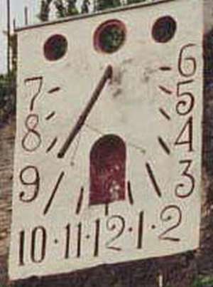 :: DESCRIPCIÓ: Llosa de pedra vertical. Nums. Àrabs. Al mig petita capella.