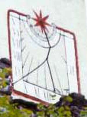:: DESCRIPCIÓ: Policromar, pintat a la paret, quadrat. Doble numeració amb números romans