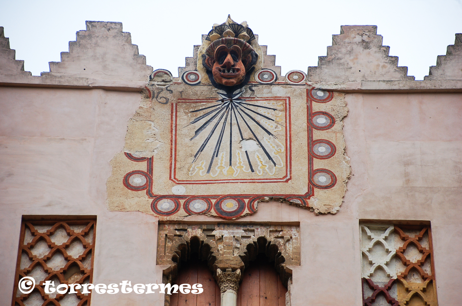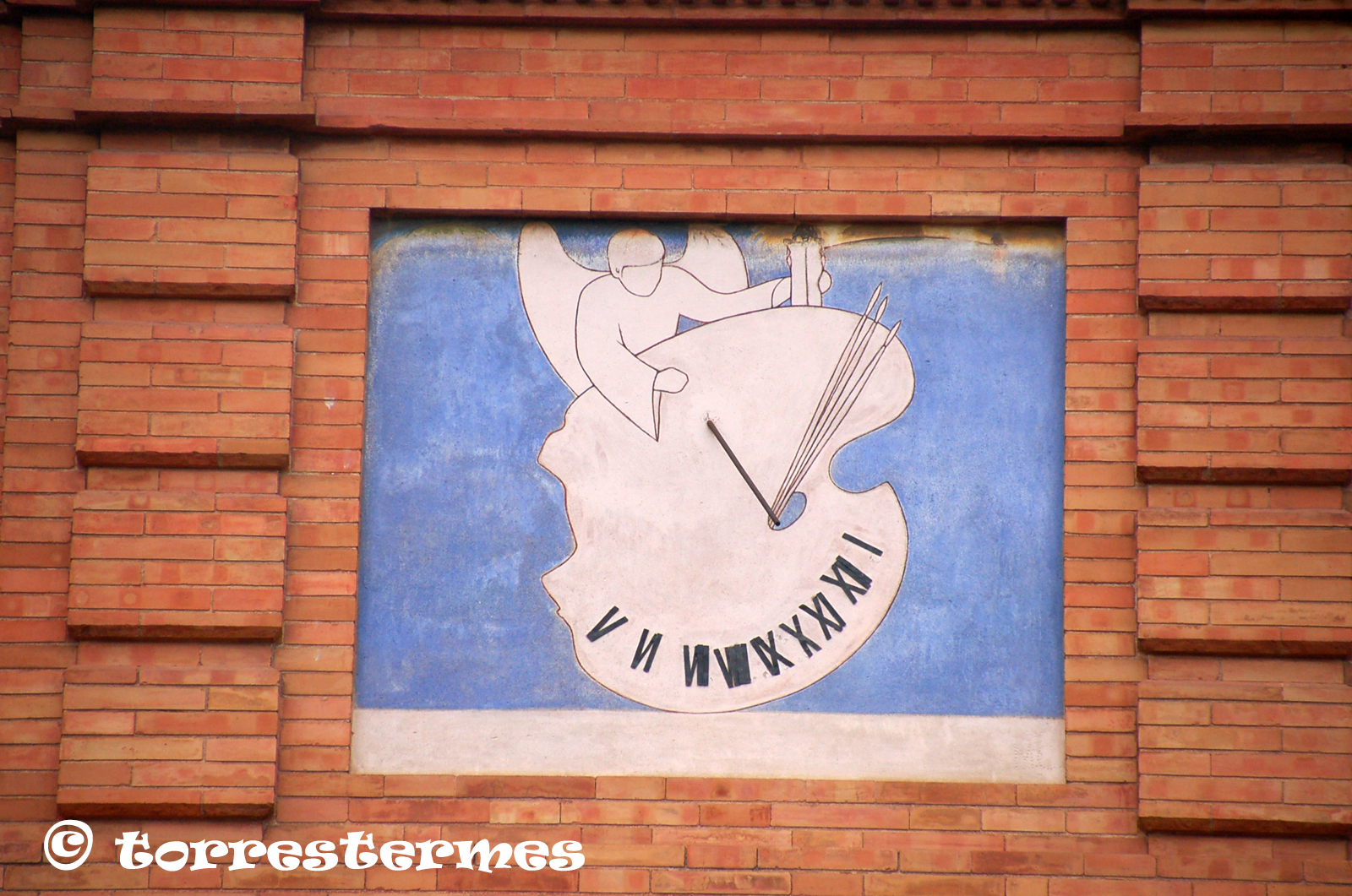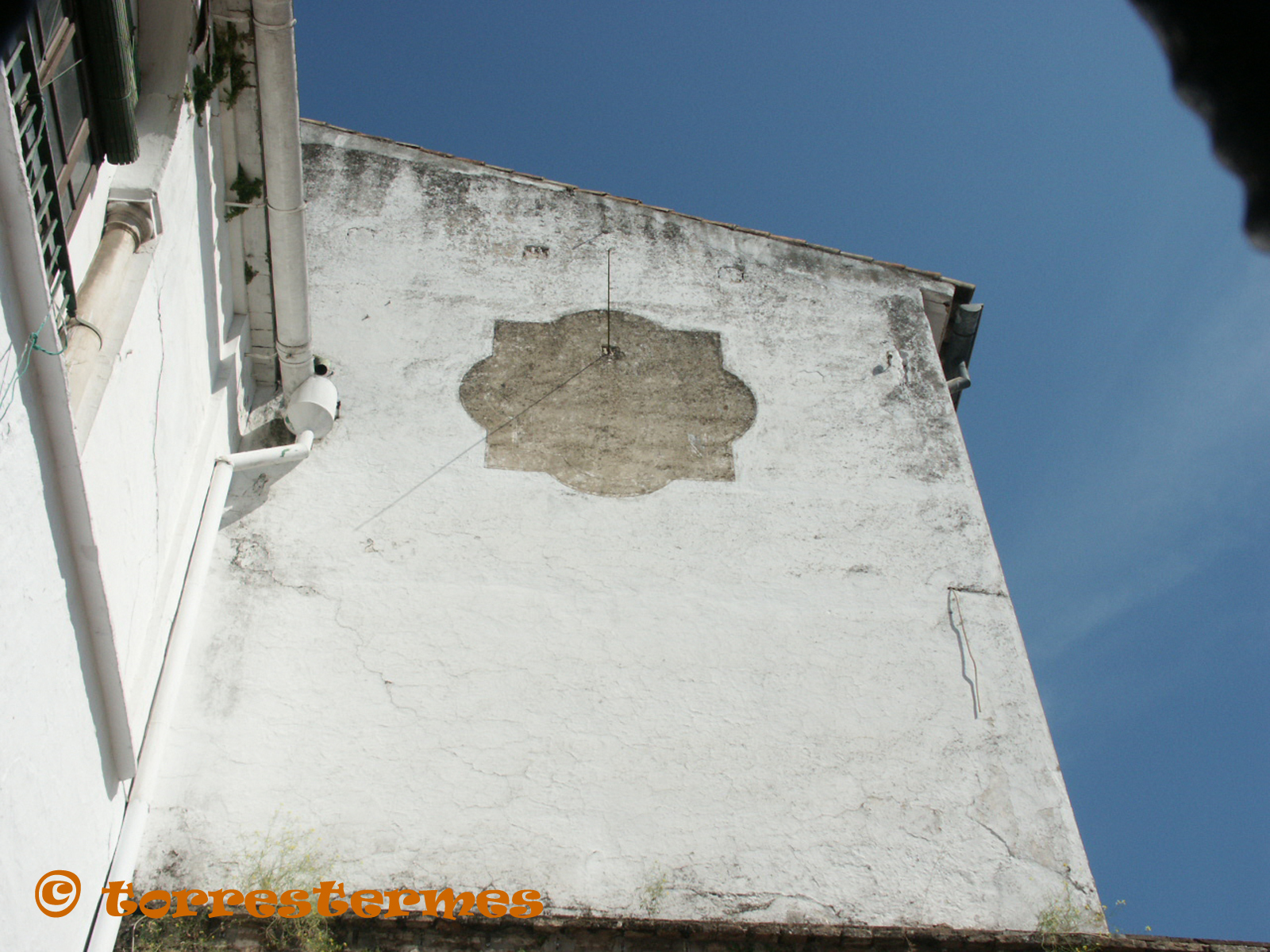 Also striking is the Puerta de Jerez solar sundial, in the well-known Guardiola house. It is painted on the upper part of the facade and an angel with two candles and a palette with brushes are represented. It does not have the hour lines drawn, and the hours are Roman numbered.