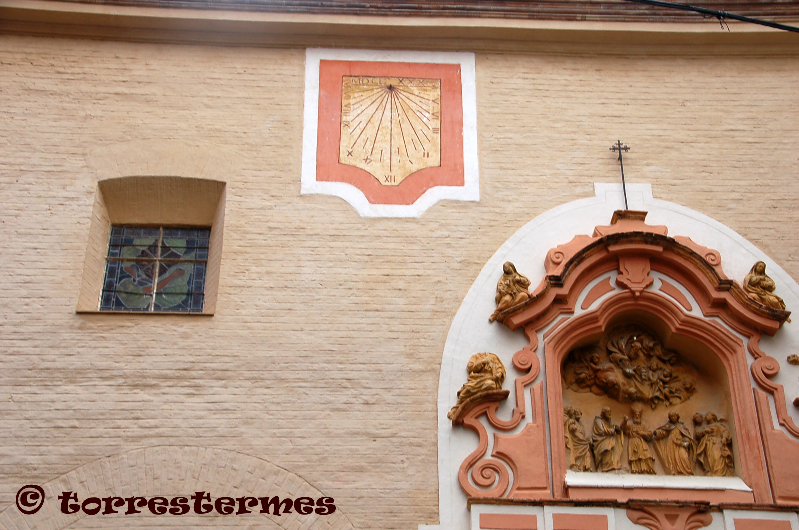 There is a great variety of sundials in Seville, according to Honorio Aguilar: "Sometimes they are very unique, like the vertical sundial that declines to the east located in the Main Cloister of the old Convento de La Merced, now the Museo de Bellas Artes in Seville. The hour lines are painted in yellow, marking the hours and the averages, the latter being shorter, the Arabic numeration is from 5 in the morning until 4 in the afternoon, and the letters AM are superimposed on the top. Which means Ave Maria, and is attributed to Juan de Oviedo. "